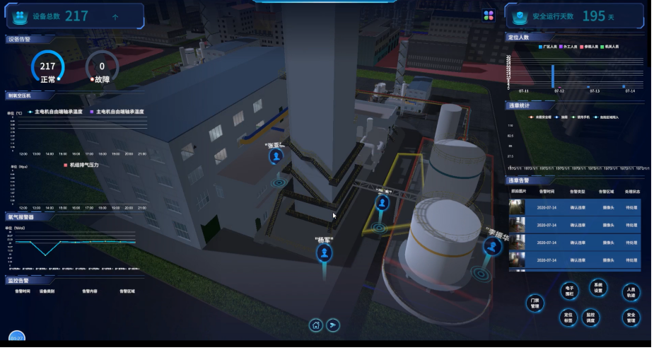 利用數(shù)字化技術(shù)對裕泰化工的焦化廠、裕隆化工、燃氣三個廠區(qū)建模,實現(xiàn)人員行為管理數(shù)字化、可視化、信息化。