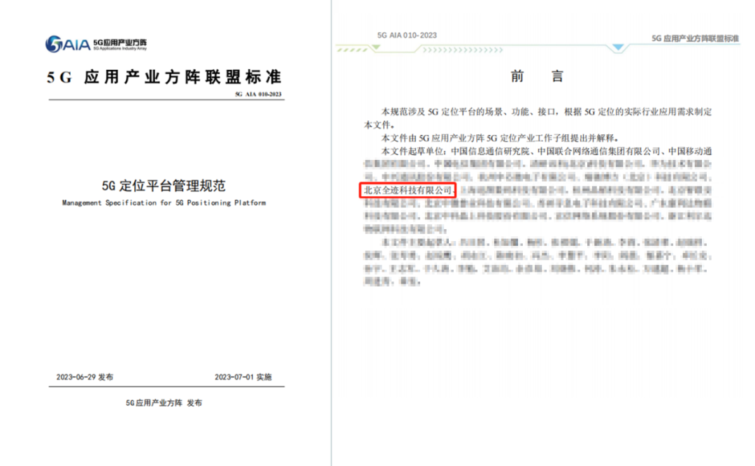 五、全跡科技參編制定《5G定位平臺管理規范》,該規范由信通院、聯通、移動、電信等企業牽頭,由5G應用產業方陣于2023年6月29日發布,2023年7月1日實施。規范涉及5G定位平臺的場景、功能、接口等。